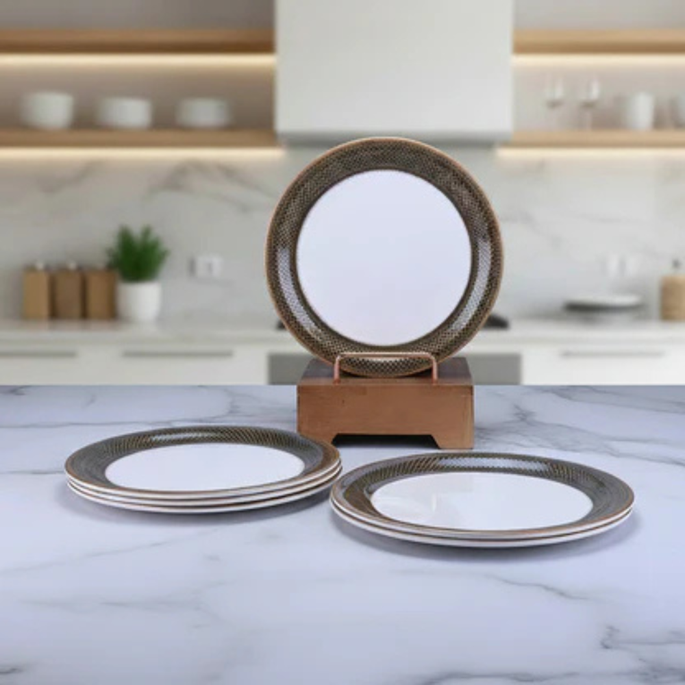 A golden round melamine dinner plate represents a perfect blend of elegance, durability, and practicality, making it a popular choice for modern homes, restaurants, catering services, and hospitality businesses. With its luxurious golden appearance and strong melamine construction, this plate offers the aesthetic appeal of fine dinnerware while maintaining the resilience required for everyday use. Designed to elevate the dining experience, golden round melamine dinner plates combine stylish design with functional performance, making them a versatile addition to any table setting.